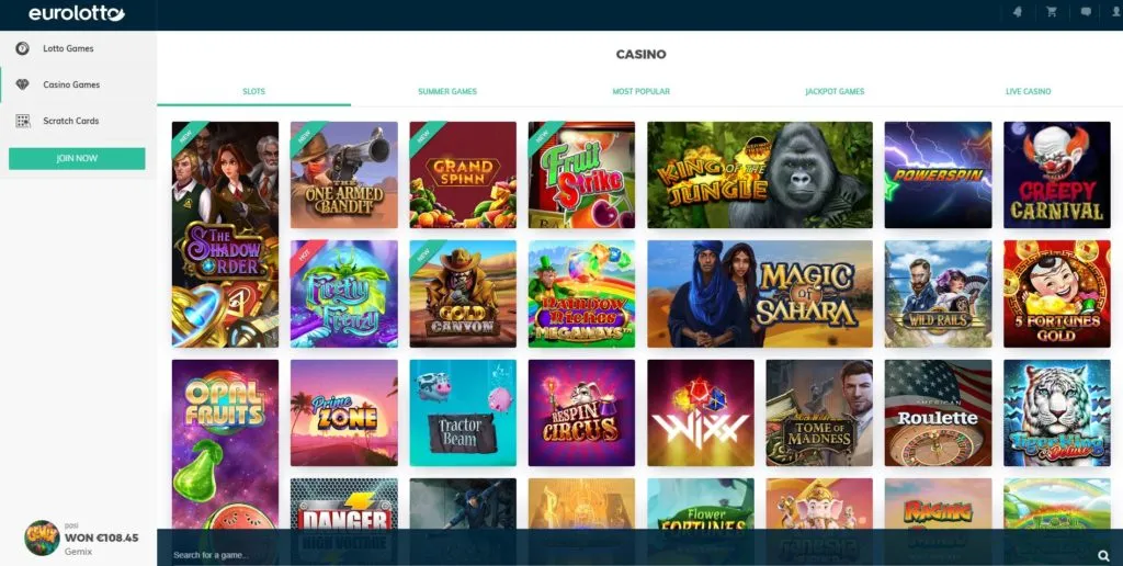 För att få den allra enklaste men samtidigt mest spännande upplevelsen inom spel på nätet, med chans till massiva vinster, finns det ingen anledning att gå någon annanstans än till EuroLotto. Med Europas största dagliga jackpott, så kan EuroLotto erbjuda dig chansen att vinna deras Majestic Millions, värt över 25 miljoner euro, varje dag, och dessutom besvara frågan – vad skulle du göra om du vann? Dessutom kan EuroLotto erbjuda ett växande urval av videoslots, jackpottspel, videopoker, bordsspel, skraplotter, Keno och mycket mer för att ge dig massor av nya spel att testa och många anledningar att komma tillbaka till EuroLotto.