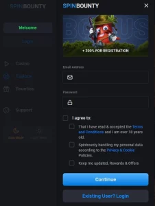 När du registrerar dig på Spin Bounty Casino behöver du bara följa några få steg. Ange först och främst dina personuppgifter i registreringsformuläret. Efter att ha fyllt i registreringsformuläret måste du verifiera ditt konto. För att göra detta får du en bekräftelselänk via e-post. Klicka bara på den här länken för att verifiera din e-postadress. Efter denna bekräftelseprocess kan du börja spela.